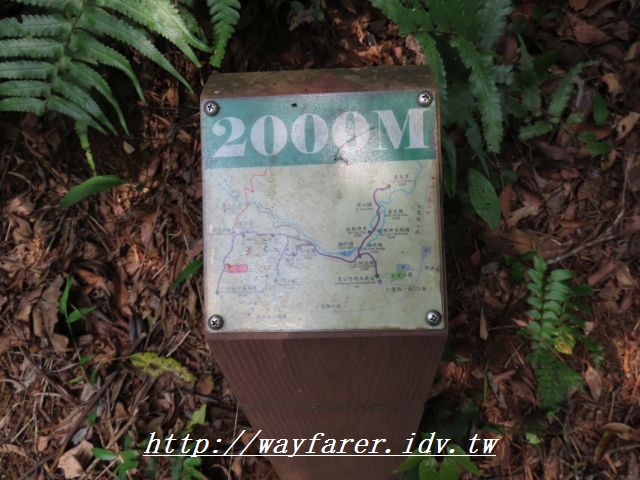 13:33 這樣平緩或小坡度的山徑,相對輕鬆許多,剛好是老公崎步道標示2000公尺處。