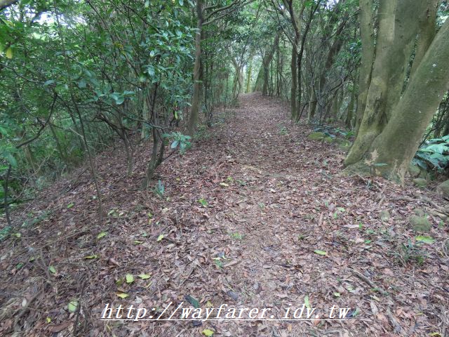 10:44 沒想到還有這樣寬廣平緩的落葉山徑,不過雖然路很寬,還是有蜘蛛絲,很麻煩。