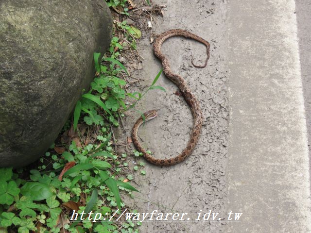14:15 路上有一隻已死的小蛇,每年都會遇到蛇,今年的第一次。