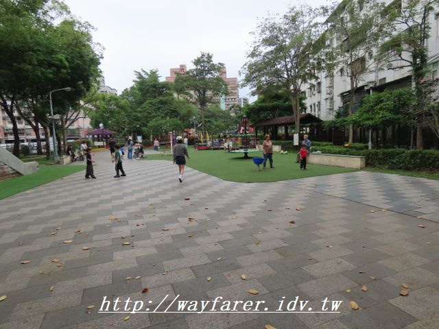 16:39 一般公園大小,不過有比較多屬於兒童的遊樂設施,有許多小朋友在玩。