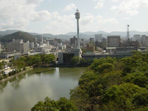 廣島城也有一個蠻寬廣的護城河,也有巨石為基的城牆,看起來也有雄偉的氣勢。不過她也是鋼筋水泥重建,只保留了原本的外觀。但裡面的文物就很多,介紹詳盡,讓我深有收穫,所以停留的時間也久。有趣的是天守閣上竟然有飲料自動販賣機,真夠現代化的。原本進來之前看到告示牌說城內沒廁所,我還以為等級很高,現在的想法是,可能還沒蓋吧。算了反正還有刻字的鑰匙環可買,方便作紀念就好,沒辦法要求每座城都還保有原物的建設,城的外觀還令人滿意就不錯了。而其遠處,即入口外側邊的小櫓參觀要脫鞋子,想必才是真正要保護的文化資產。不過我沒進去就是了。
