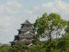 言歸正傳,岡山城看去也不錯,外觀有點、線的黃金閃耀,也有河川、巨石為基礎的傳統古城建築樣式。更加有志工(也許是有薪水的服務人員),一天四回定時解說。不禁令我想起去年登別地獄谷的那位解說人員和香港朋友。但此次我只成了見證別人的遊客。岡山城是宇喜多秀家在1597年完備築成的,所以從十月二日起會有宇喜多秀家文物特展,很可惜我只能錯過。入場券此時只要150日圓,因為二、三樓都封起來預備特展用,所以此時也沒甚麼可看,最高樓更是空蕩蕩,單調無比的內容,150日圓還嫌貴了呢!十分鐘就全逛完。這裡不僅有電梯,在一樓更有一堆商品販售,地下一樓則有提供廁所。從天守閣內的現代設施便可知這座城肯定又是鋼筋水泥重建了。