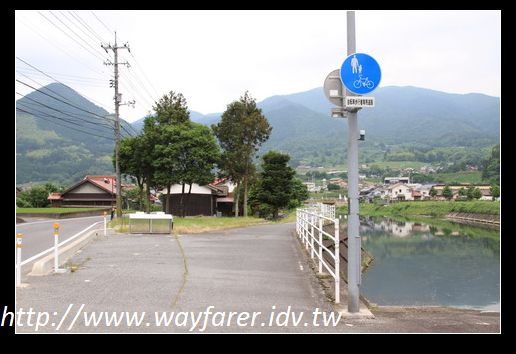 鷲原八幡宮看起來很破舊了,不過四周的環境倒是維護得很好,很乾淨不雜亂,滿有日本神社的風格,讓人很有寧靜安定的感覺。當然一樣是八幡宮卻不能與上杉謙信所有的鎌倉鶴岡八幡宮相比。畢竟鎌倉鶴岡八幡宮有其重大的歷史意義,在這裡只要享受幽靜的氛圍即可,而根據斑駁的解說牌,鷲原八幡宮竟然是一千年前便有的,經過了幾代的變更與整修、仿建,看樣子已經不是過去的鷲原八幡宮了,自然也就沒什麼名氣與歷史價值了。往腳踏車停車處走去,來時看到整建得很特殊的長長草坪有一群日本人在打槌球(應該是吧?),類似平民化的高爾夫球,看起來他們也玩得滿愉快的。幸好當時腳踏車沒亂停,不然停在草坪中現在就尷尬了。然後在旁邊的流鏑馬馬場入口照照便離去,在看到有自行車專用道以及緊靠著河邊行駛,令人感覺大好,於是繼續我的自行車之旅。