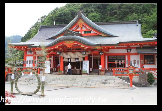 回到自行車停靠處,背包並沒被偷走,日本果然是治安好的地方,不過也僅此這一次,之後我也不會再這樣放心,還是把背包帶著比較穩當。循著路線規畫走,路上有個氣溫顯示此時攝氏25度,感覺有些熱。沿著道路續騎直到遇到自行車禁止的警告標示我才折返往另一條路回去。來到鷲原八幡宮看起來不錯而且還有津和野城遺址吸引我,於是停車逛。這類似森林步道風景自然是好的,接著看到了津和野城遺址指標,便上爬,起初路還不錯,看樣子是正在做些維護的動作,想說只有1.1公里,來回走一下時間上應該許可,因此時才接近下午三點而已。不過走了一小段,有蚊蠅騷擾而且在一棵大樹後路跡就變得較不清楚,再加上一路陡上,想想在台灣爬山的經驗,不能在國外去賭,這裡可是沒有任何登山條指引的,如果迷路就糟了,還是撤退比較保險。回到地面再往八幡宮去逛。