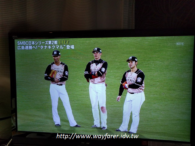 19:23 回到旅館觀看日本職棒日本一大賽廣島鯉魚和北海道火腿第二戰。