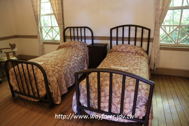 先照照旅館正門與介紹,原來之所以有名且要參觀門票,在於它建築於西元1905年(明治38年),是日本唯一純木造建築的西洋旅館,昭和55年(西元1980年)指定為國有重要文化財。然後休息了十幾分鐘,因為這樣騎也挺費力的,才進去逛。還好進去後大部份的擺設、格局都可以照相,有些可能要維護是不能通行的。我想也是,若是純木造的話,沒多久恐怕也不能再入內參觀了。而此時參觀的人是被要求脫鞋,鞋子放進塑膠袋拎著走,以保護木造建築。當中比較令人印象深刻的就是,每間房間都有壁爐,那個時代應該是必然正常的設施,到今日可就稀罕了,都以暖氣取代,也不會允許房間升火。這就是所謂的復古感吧。比較有趣的是,還留有當時的房價,以兩人房附浴室的金額是3800日圓,早餐每人450日圓,也就是兩人房附早餐共要4700日圓,另加一成服務費則為5170日圓。以當時的物價水準來說自然是高昂的。全部逛完才離開。