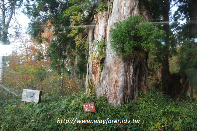 冒著風雨走到雄山神社,剛剛的合照讓相機也濕了,之前用塑膠袋保護得還不錯,為了合照破功。幸好相機能防潑水,沒影響。只是風實在太大,草草地照相做紀念,便趕緊離開。神社的木門也都綁得緊緊的,所以也看不見裡面的神祉,可見日本人早已為即將入冬封山做好準備了。