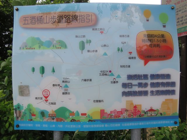 詳細路線:南天宮-南崁山-崙頭土地公-海山之路-山鼻山-福德古道-知性古道-五酒桶山-六福步道O形