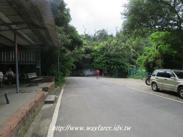15:04 文間山登山口在右前方圍牆處,又累了,在棚子處休息一下。