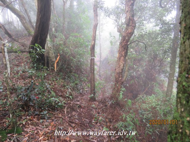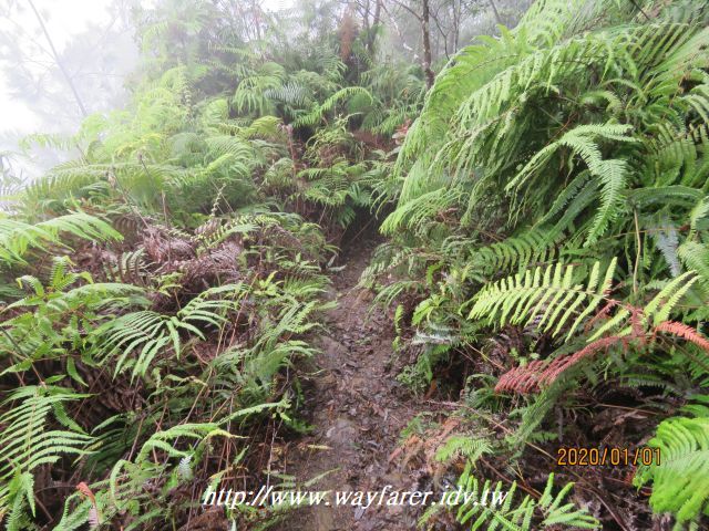 10:26 網路上調查時有看到的稜脊路。說在這裡可以看到大甲溪美麗的河流地形,可惜此時一片霧茫茫,什麼也看不到。
