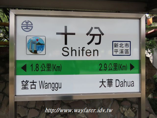 15:23 進入月台拍照,十分車站的兩方向站名與距離。